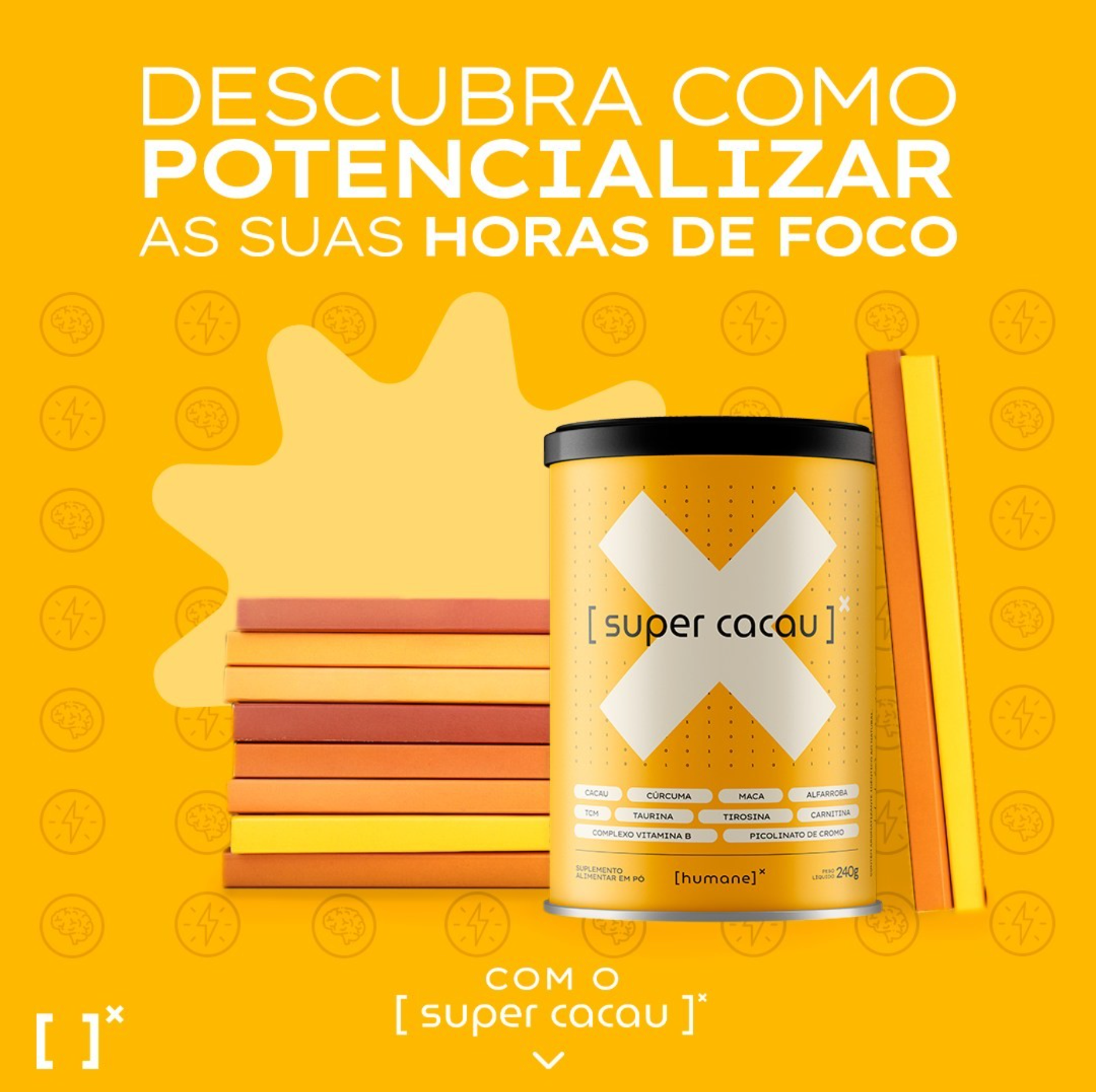 O super cacau é uma bebida funcional que ajuda a promover mais disposição,atençãoe energia.É o jeito mais gostoso de sentir-se mais forte para vencer as atividades cotidianas de trabalho, reuniões, estudos, treinos de academia, casa e família.